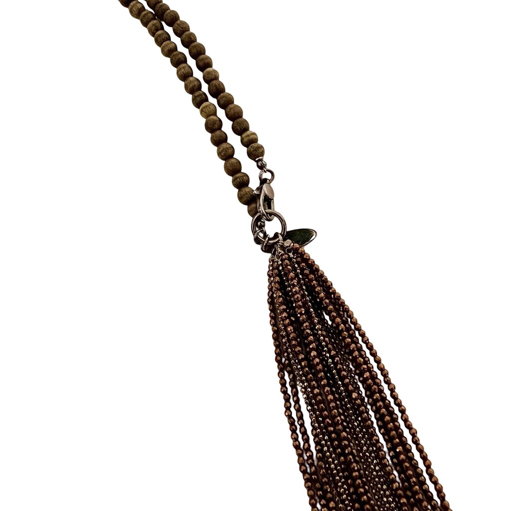 Brunello Cucinelli Wood Mala Beaded Tassel Necklace