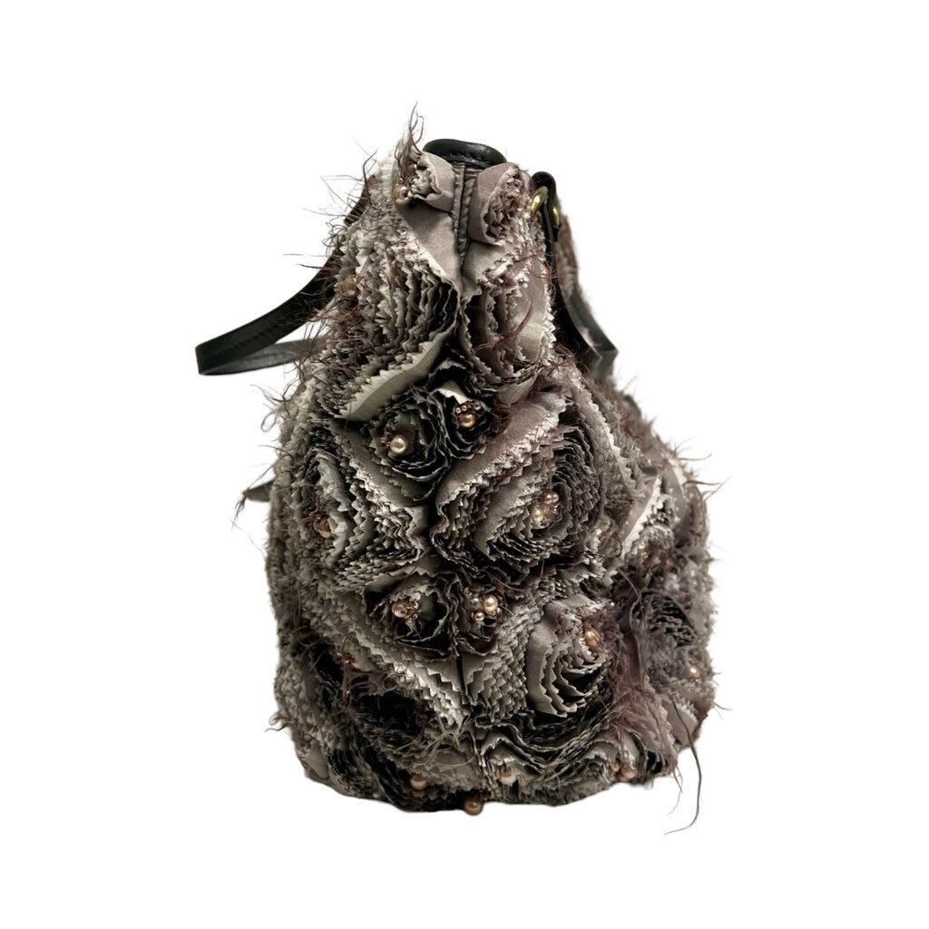 - Grey silk floral embellishment throughout with faux pearl beading